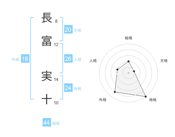 長富 実十さんの総格は44画の2点!