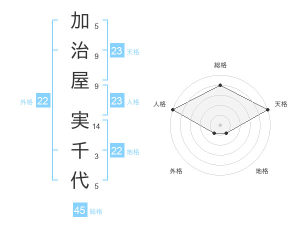 加治屋 実千代さんを姓名の画数から五運を鑑定