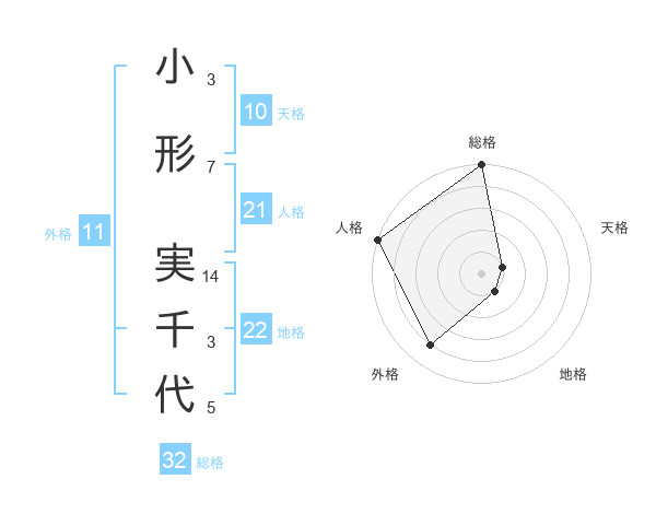 小形 実千代さんの総格は32画の5点!