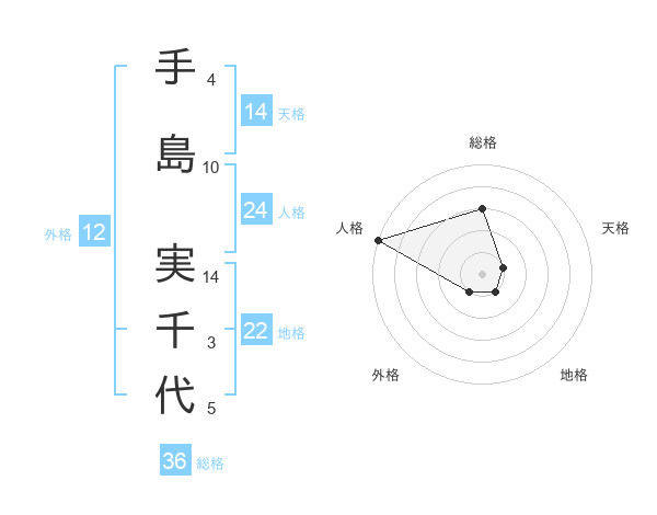 手島 実千代さんの地格は22画の1点!