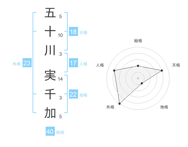五十川 実千加さんの外格は23画の5点!
