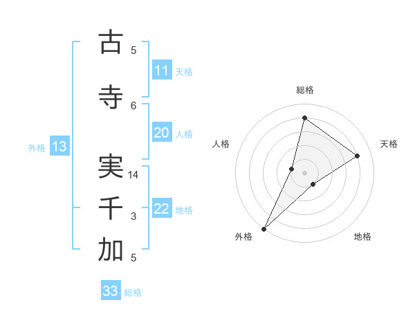 古寺 実千加さんを姓名の画数から五運を鑑定