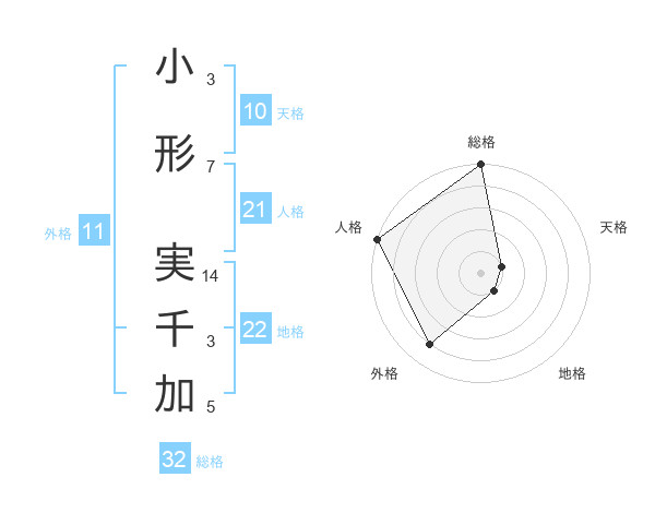 小形 実千加さんの総格は32画の5点!
