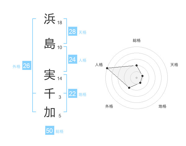 浜島 実千加さんを姓名の画数から五運を鑑定