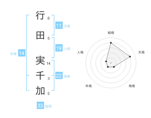 行田 実千加さんの総格は33画の4点