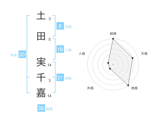 土田 実千嘉さんを姓名の画数から五運を鑑定