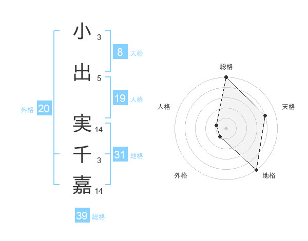 小出 実千嘉さんの総格は39画の5点!
