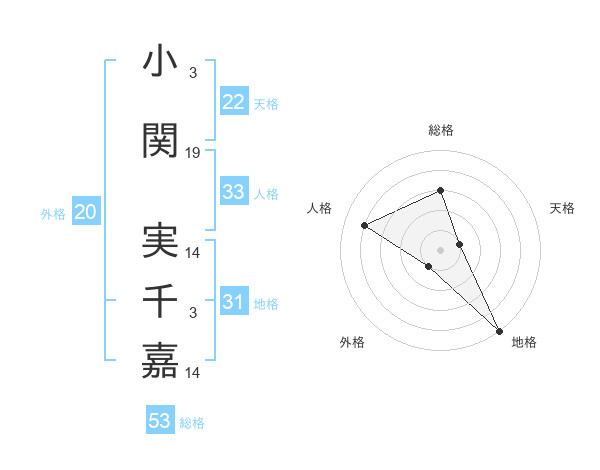 小関 実千嘉さんを姓名の画数から五運を鑑定
