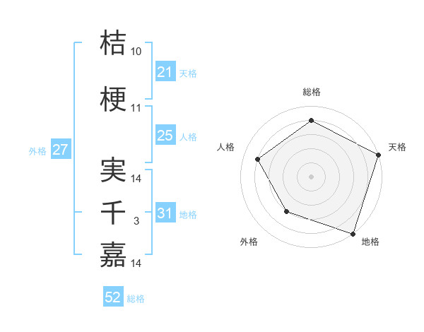 桔梗 実千嘉さんの総格は52画の4点!
