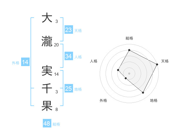 大瀧 実千果さんを姓名の画数から五運を鑑定
