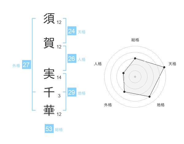 須賀 実千華さんを姓名の画数から五運を鑑定