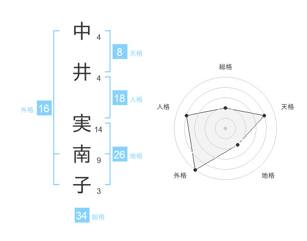 中井 実南子さんの天格は8画の4点!
