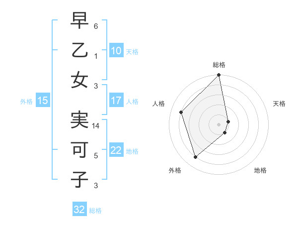 早乙女 実可子さんの総格は32画の5点!