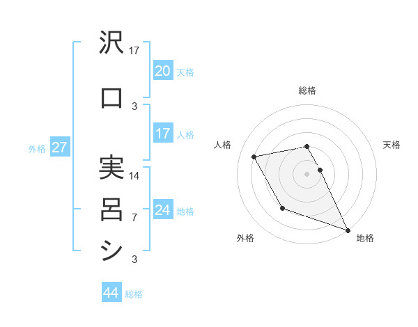 沢口 実呂シさんの天格は20画の1点!