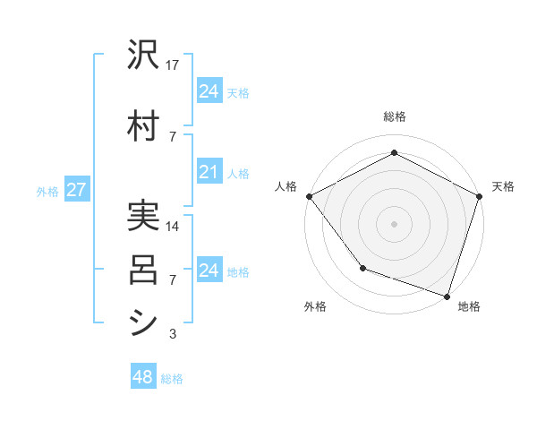 沢村 実呂シさんを姓名の画数から五運を鑑定