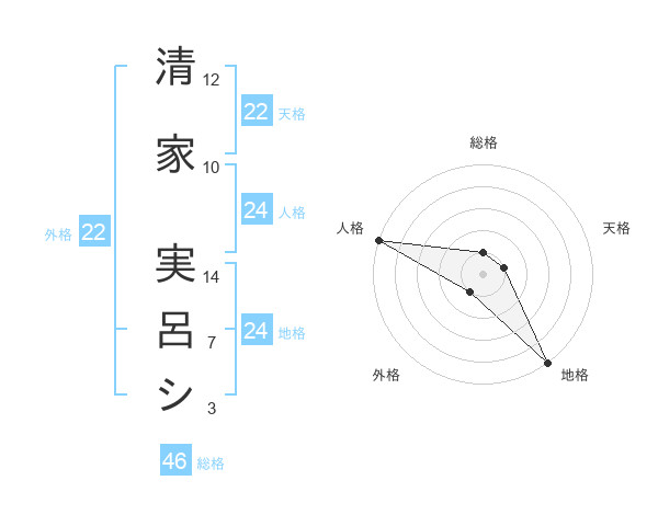 清家 実呂シさんを姓名の画数から五運を鑑定