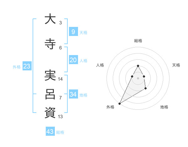 大寺 実呂資さんの総格は43画の2点!