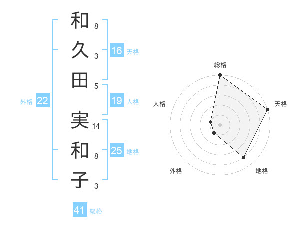 和久田 実和子さんを姓名の画数から五運を鑑定