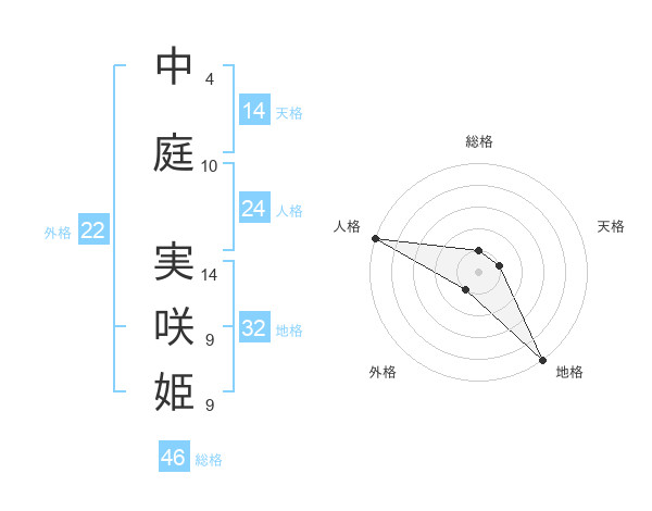 中庭 実咲姫さんの総格は46画の1点!