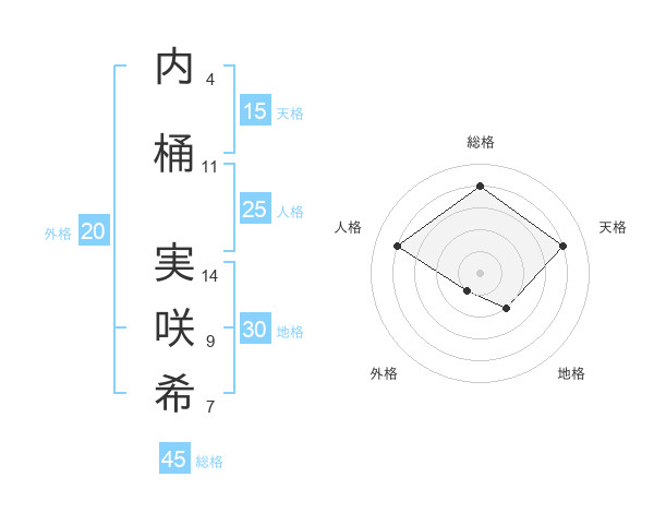 内桶 実咲希さんの総格は45画の4点!