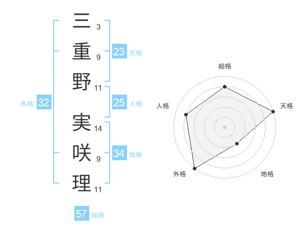 三重野 実咲理さんを姓名の画数から五運を鑑定