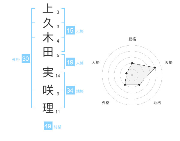 上久木田 実咲理さんを姓名の画数から五運を鑑定