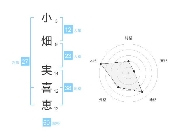 小畑 実喜恵さんを姓名の画数から五運を鑑定