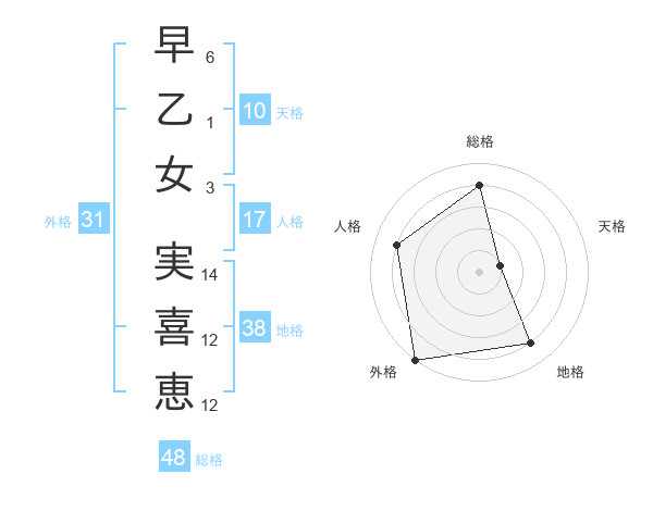 早乙女 実喜恵さんを姓名の画数から五運を鑑定