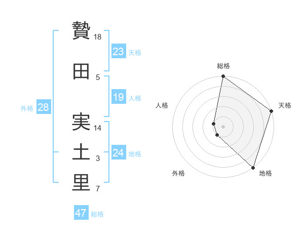 贄田 実土里さんの総格は47画の5点!