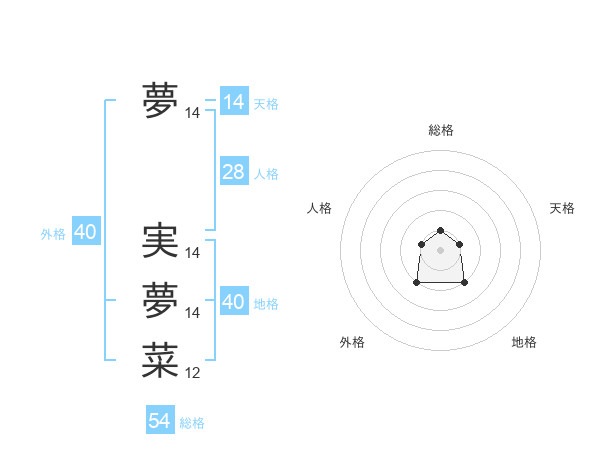 夢 実夢菜さんの総格は54画の1点!