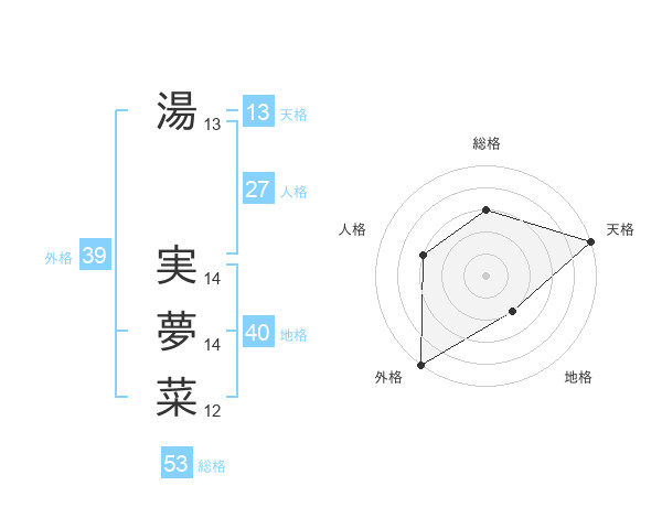 湯 実夢菜さんの外格は39画の5点!