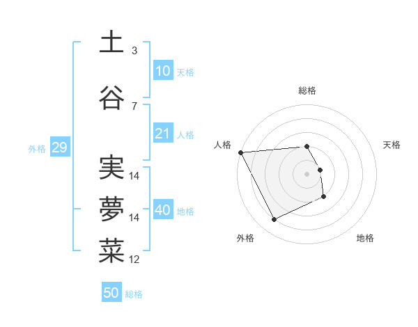 土谷 実夢菜さんを姓名の画数から五運を鑑定