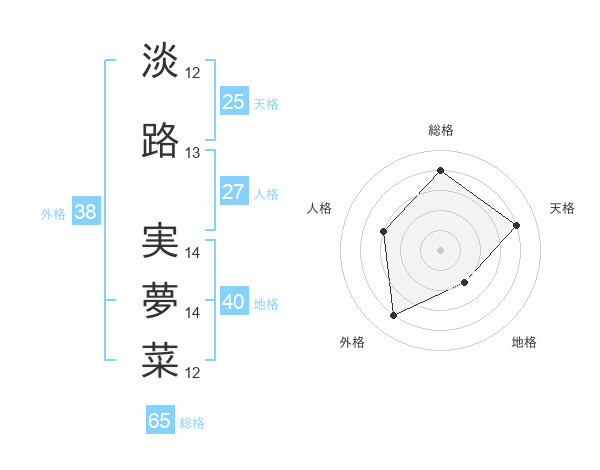 淡路 実夢菜さんの総格は65画の4点