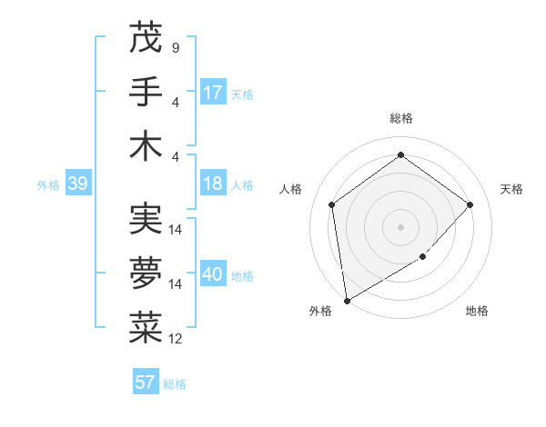茂手木 実夢菜さんを姓名の画数から五運を鑑定