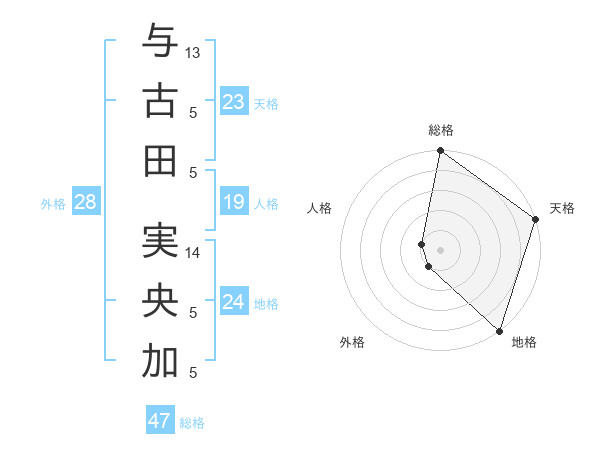 与古田 実央加さんの総格は47画の5点