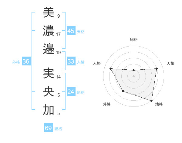 美濃邉 実央加さんの総格は69画の1点!