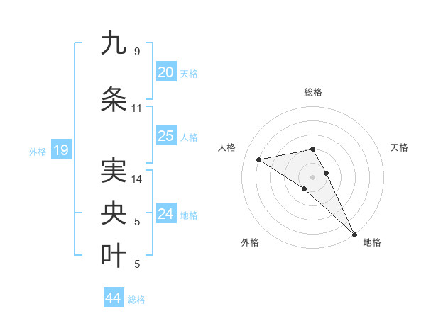 九条 実央叶さんを姓名の画数から五運を鑑定
