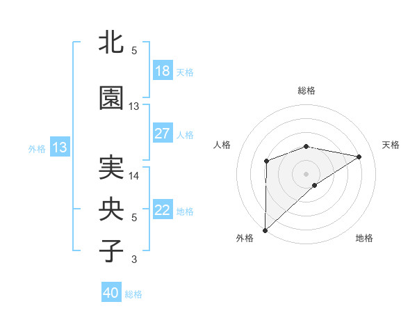 北園 実央子さんの外格は13画の5点!