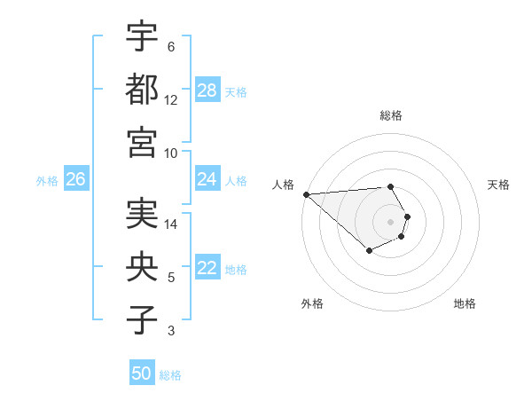 宇都宮 実央子さんを姓名の画数から五運を鑑定