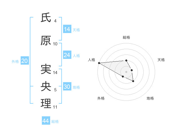 氏原 実央理さんの総格は44画の2点
