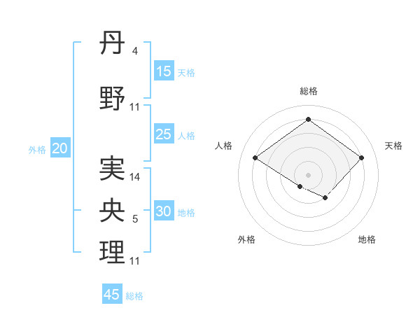 丹野 実央理さんを姓名の画数から五運を鑑定