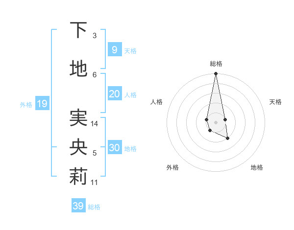 下地 実央莉さんを姓名の画数から五運を鑑定