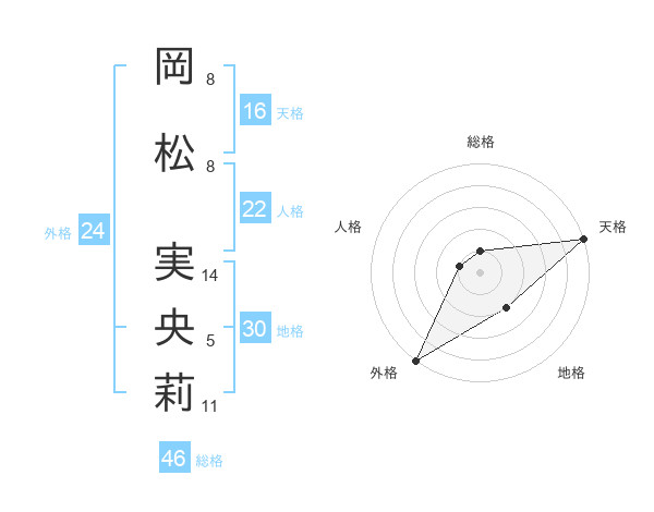 岡松 実央莉さんの外格は24画の5点!