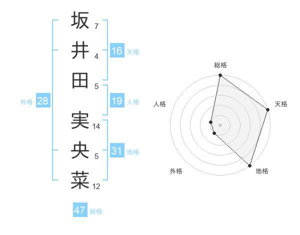 坂井田 実央菜さんの地格は31画の5点!