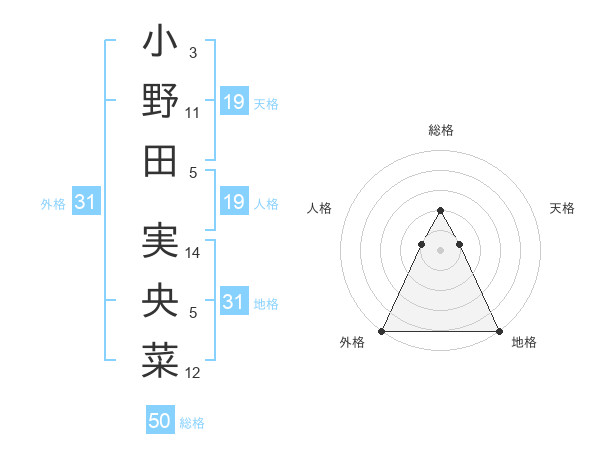 小野田 実央菜さんの総格は50画の2点