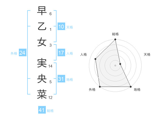 早乙女 実央菜さんの総格は41画の5点!