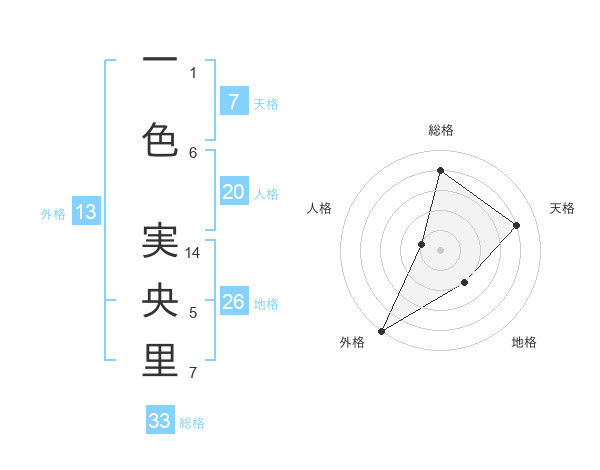 一色 実央里さんの外格は13画の5点!
