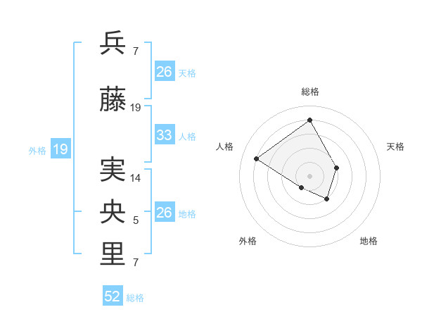 兵藤 実央里さんを姓名の画数から五運を鑑定