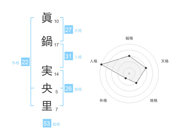 眞鍋 実央里さんの総格は53画の3点