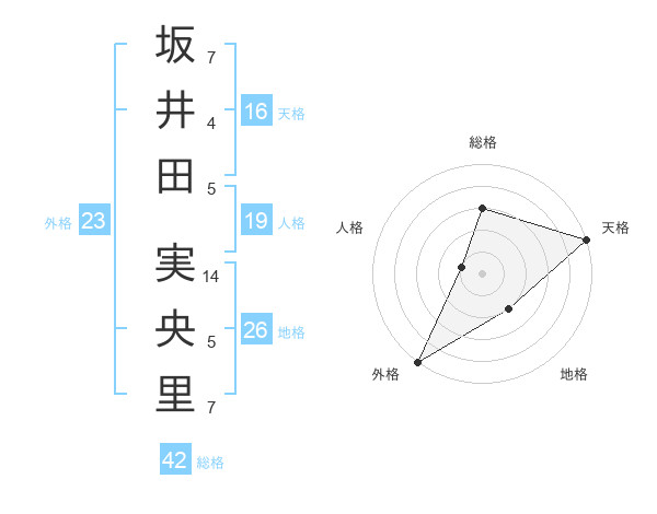 坂井田 実央里さんを姓名の画数から五運を鑑定